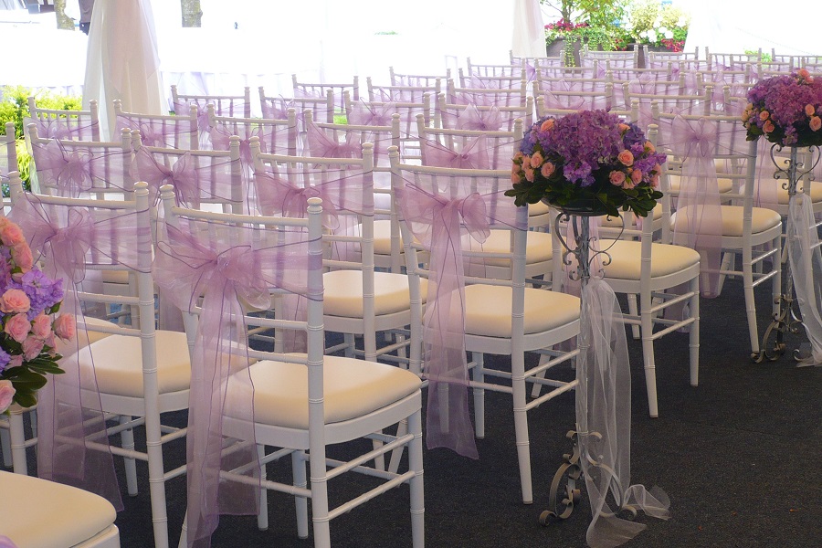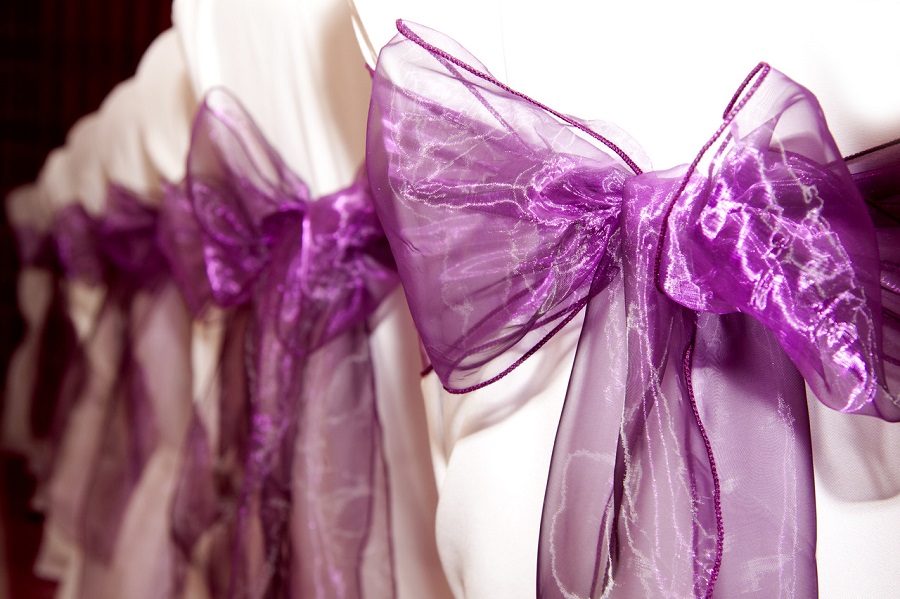 Những chiếc nơ ghế màu tím sang trọng thích hợp với mọi yêu cầu tiệc khác nhau