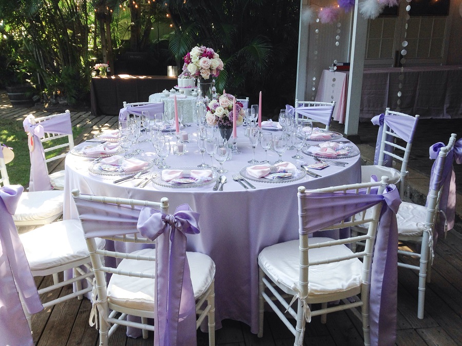 Bạn có thể kết hợp giữa nơ ghế màu trắng và hồng hoăc nơ ghế màu hồng và bàn ghế màu trắng, đều mang tới không gian sang trọng và đẳng cấp: